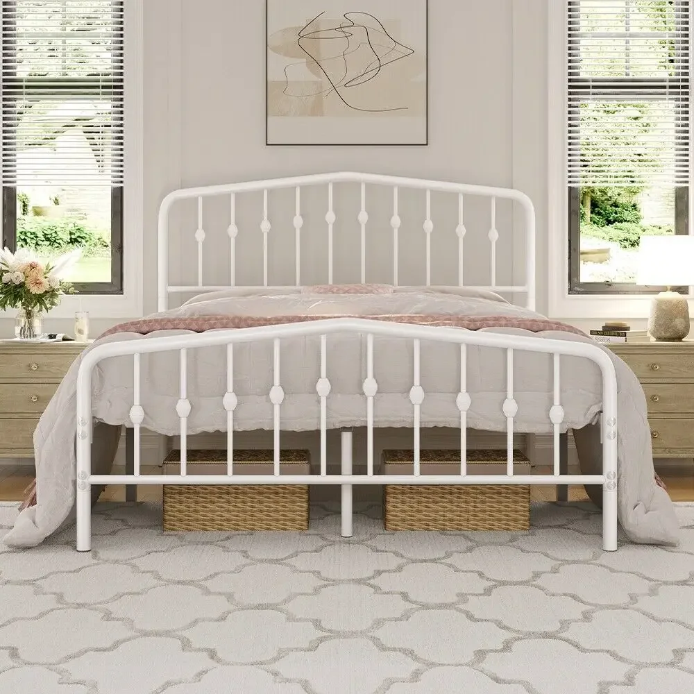 Twin/Full/Queen Bed Frames Metal Platform Bed with Arched Headboard/Footboard,Black/White/Antique Gold