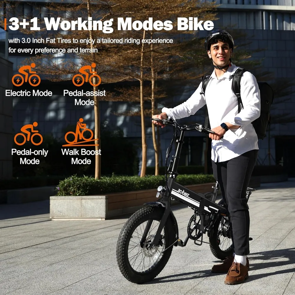- All-Terrain Foldable Ebike - Effortlessly conquer all terrain with the powerful 750W brushless motor and robust 3-inch fat tires. Experience the exhilaration of accelerating up to 22mph in 11S and enjoy a smooth ride, whether commuting on city streets or tackling challenging off-road trails.