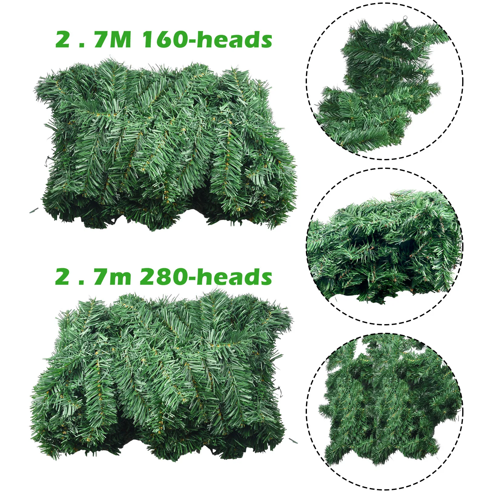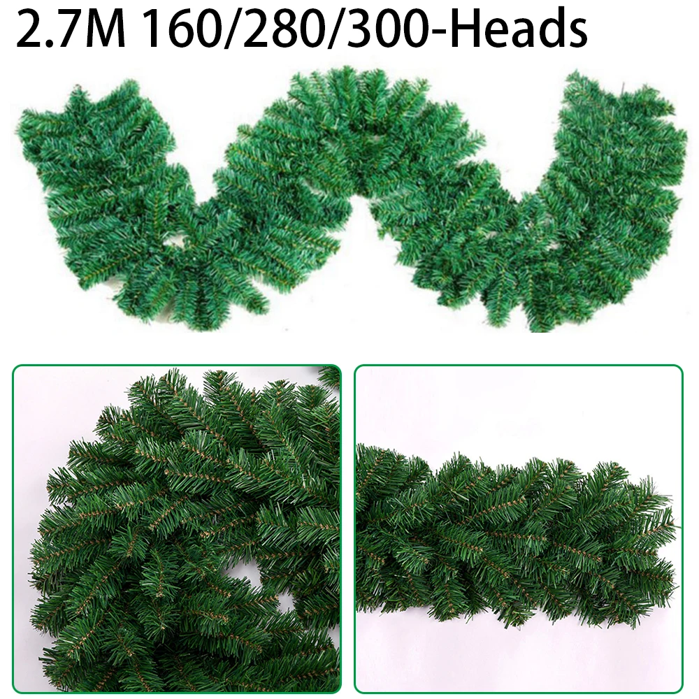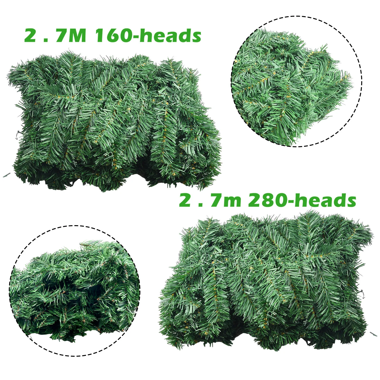 *2.7M 160/280/300-Heads Christmas Xmas Garland Artificial Pine Green Spruce