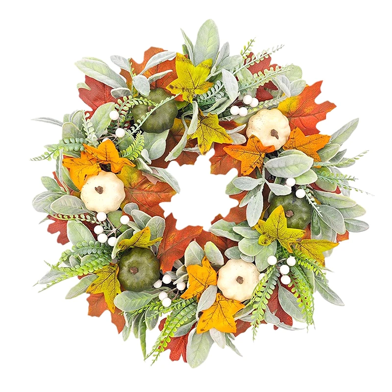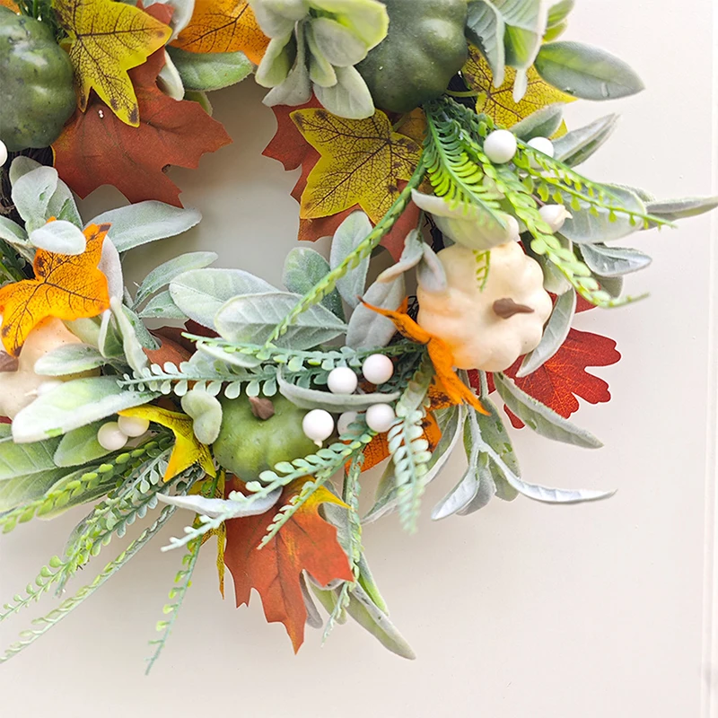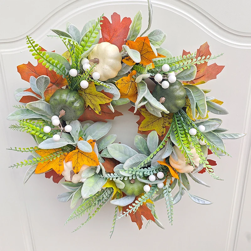 45cm Fall Wreaths Pumpkin Berry Maple Leaf Artificial Wreath Harvest Autumn Door Wreath Christmas New Years Home Hanging Decor