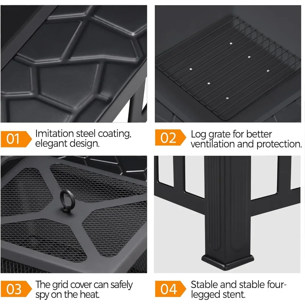 - Heat-resistant Metal Firepit: Constructed from solid metal with a heat-resistant finish, this square fire pit boasts high strength and good durability but is still lightweight. The fire bowl can withstand high temperatures of up to 600 ℃/1112 ℉