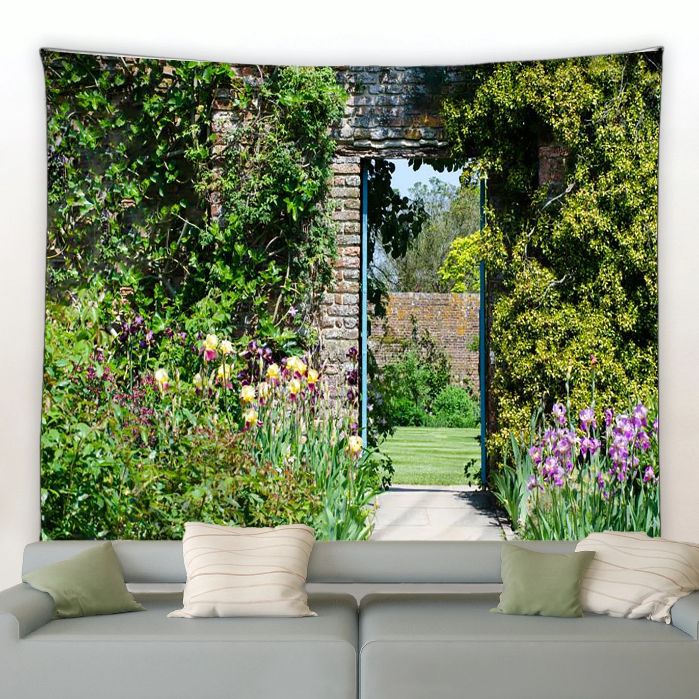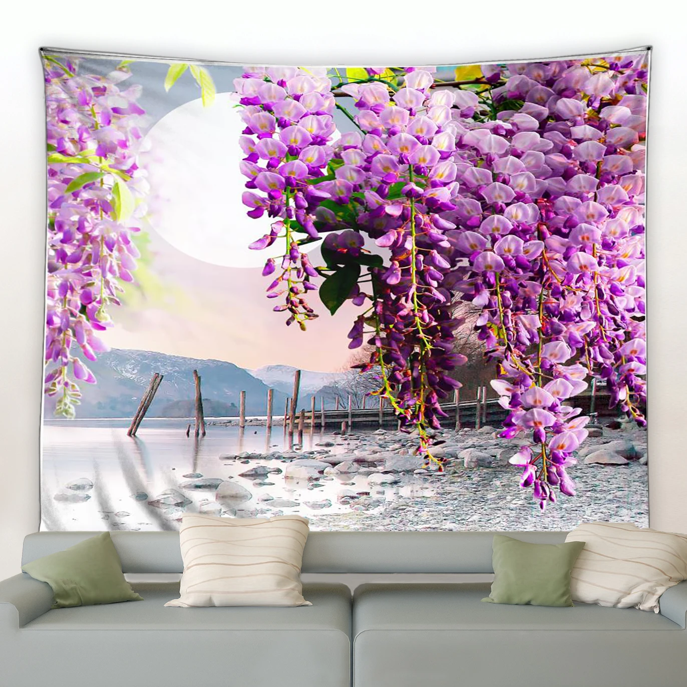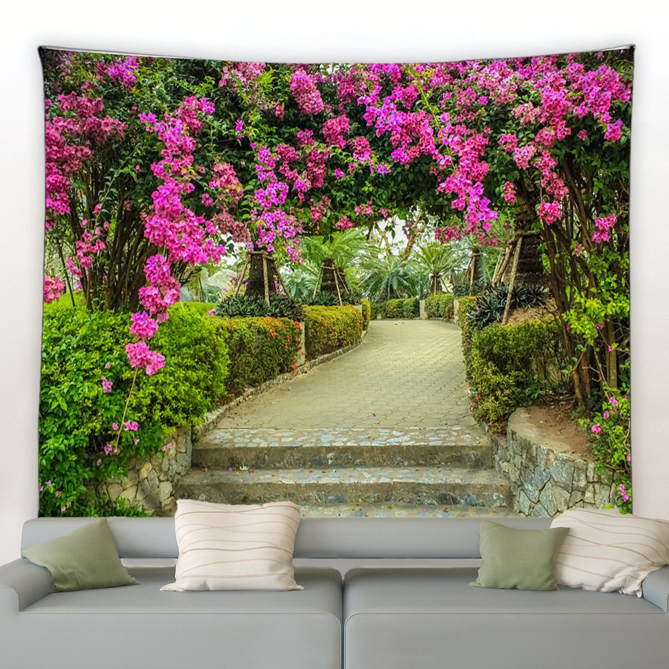 Spring Forest Floral Tapestry Rural Flowers Pink Red Garden Wall Hanging Decor Natural Landscape Home Living Room Tapestries Rug