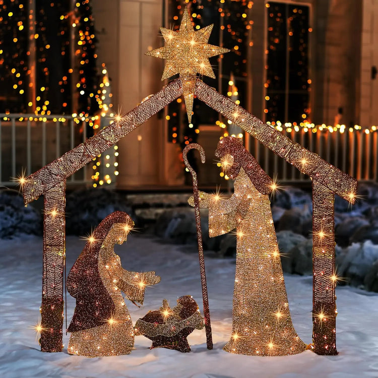 Christmas Nativity Scene Decorations Lighted Outdoor Scene, Holy Family Yard Decoration