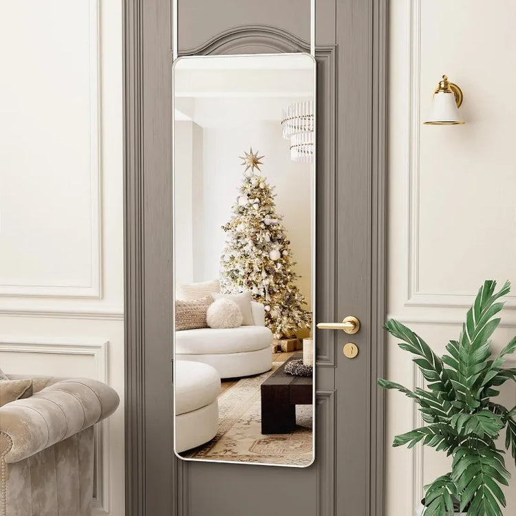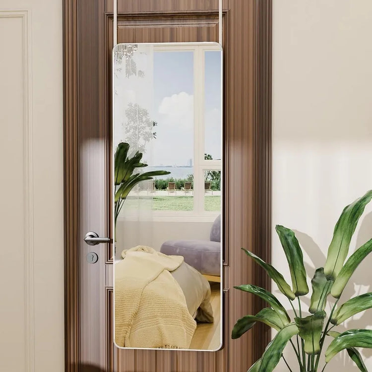 Door Mirror, Full Length Mirror Over The Door, 14'' x 48'' Hanging Mirror, Rounded Rectangular Wall Mounted/Hanging/Leaning