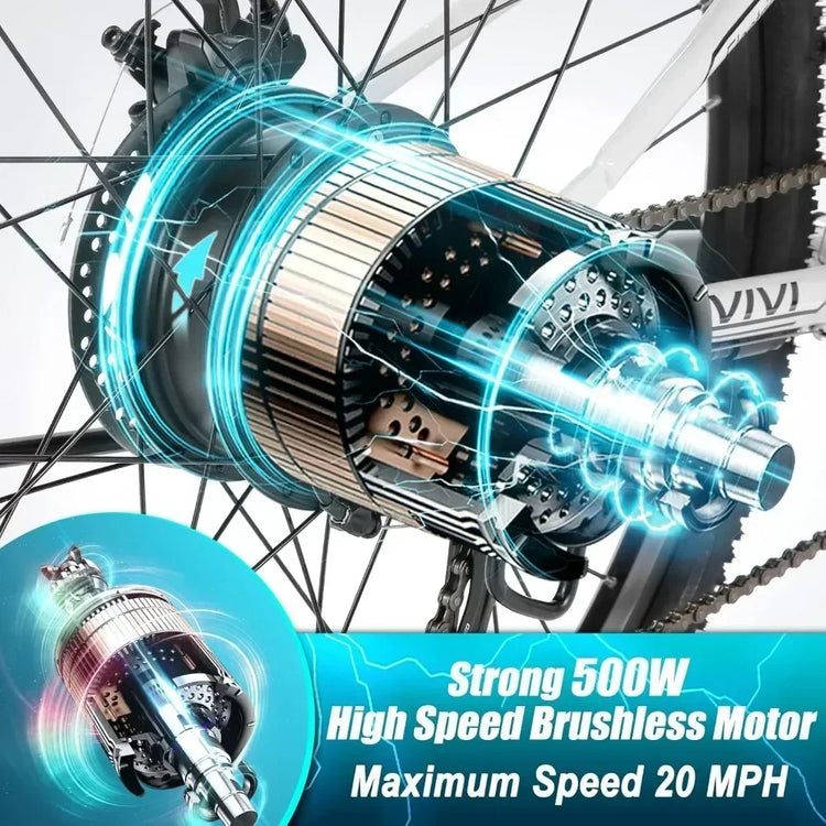 【STRONG 500W MOTOR】:Electric bicycle for adults is equipped with a 500W high-speed brushless motor, which has a longer lifespan and faster starting speed. The removable battery features an energy-saving system, providing longer battery use time. The 4-6 hours of charging time is enough for your daily commute or a day of biking in the mountains.