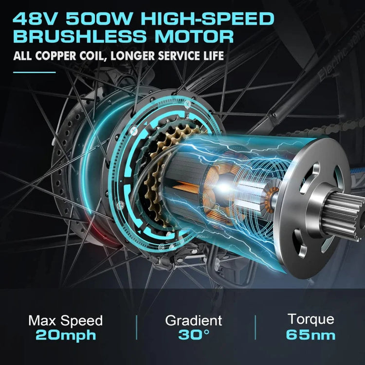 - 【STRONG POWER&REMOVABLE BATTERY】: Vivi ebike folding is equipped with 500W high speed brushless motor, max speed can reach 20mph. Detachable 48V 374.4Wh lithium-Ion battery, It only takes 4-5 hours to charge. Two charging ways, charging on the bike or removing the battery for charging, don't worry about being stolen