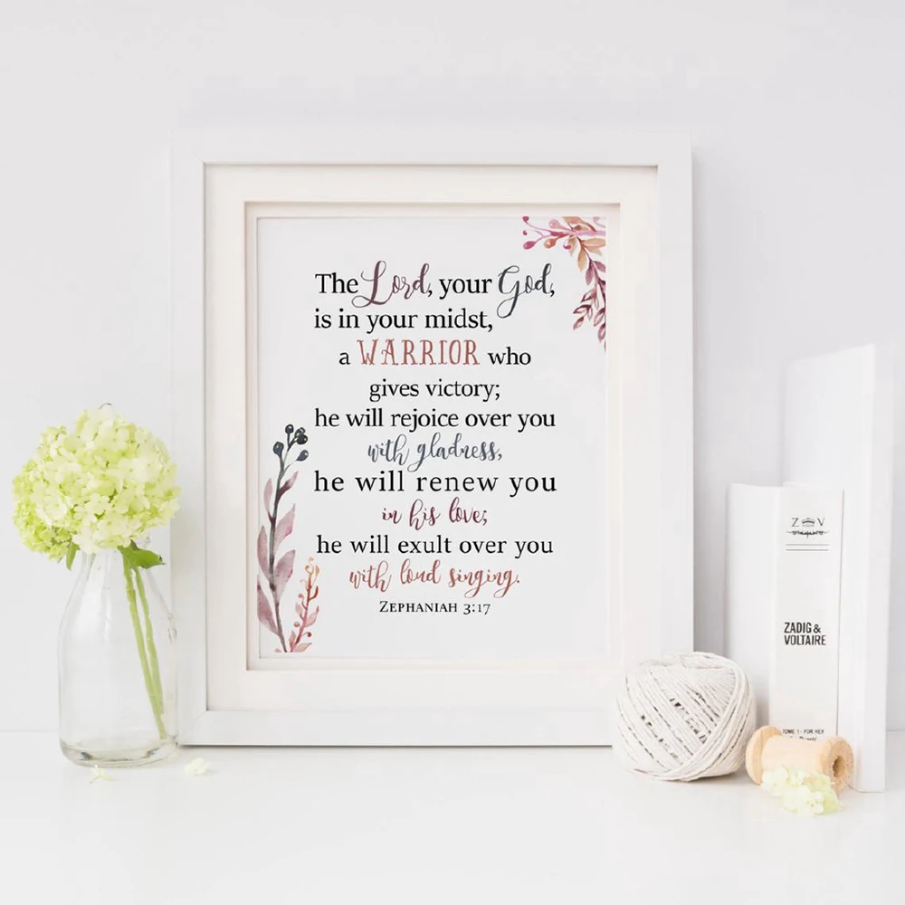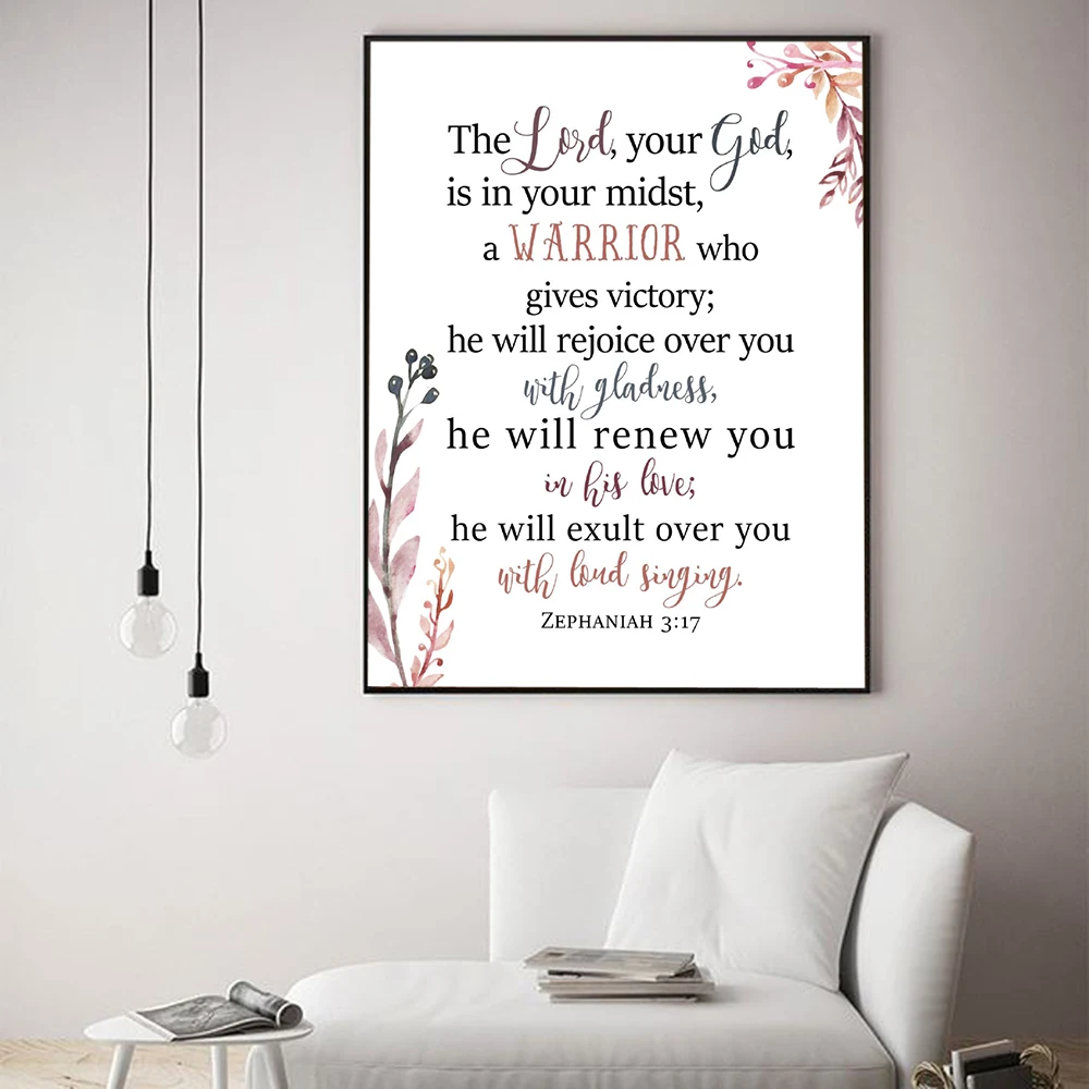 Zephaniah 3:17 Scripture Wall Art He Who Dwells In The Shelter Bible Verse Canvas Painting Poster For Your Christian Home Decor